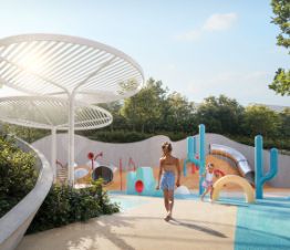 Внутренний двор превращен в тихое зеленое пространство с арт-объектами, прогулочными аллеями и уютными зонами отдыха. Здесь приятно проводить время с семьей, встречать друзей и просто наслаждаться состоянием покоя.