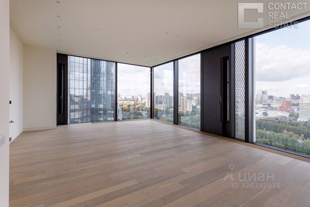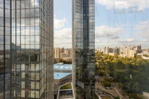 Квартира очень светлая и просторная, благодаря высоким потолкам и множеству панорамных окон. Из окон открывается потрясающий панорамный вид на центр Москвы, Москва-реку, зеленый парк, "Москва-Сити", Дом Правительства РФ.