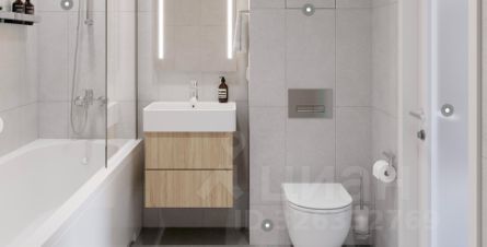 Сантехника. Установлено всё необходимое: подвесная раковина и унитаз с инсталляцией, белая акриловая ванна с экраном или душевой поддон. Смеситель для раковины и ванны или душа в комплекте с лейкой, шлангом и душевой стойкой с плавающими креплениями.