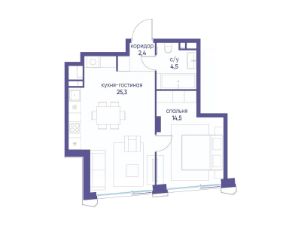 Продаётся 1-комн. квартира от застройщика: общая площадь 46.70 м², жилая 14.50 м², кухня 25.30 м², 7-й этаж, жилой квартал "Остров 12", корпус 2 (секция 1). Срок сдачи: 1 квартал 2029 года.