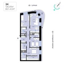 В продаже — трехкомнатная квартира с чистовой отделкой, общей площадью 126,65 кв. м. Квартира расположена на десятом этаже одинадцатиэтажной секции корпуса класса Адвансд в новом районе СберСити, который строит Сбер. Дом находится на второй береговой линии Москвы-реки.