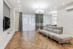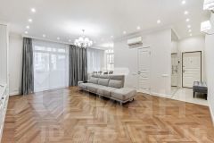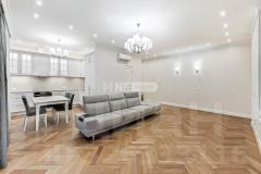 Выполнена новая отделка в современном стиле с использованием дорогих натуральных материалов, квартира меблирована. Новая немецкая кухня NOBLIA оснащена качественной бытовой техникой NEFF, оборудованы места хранения.