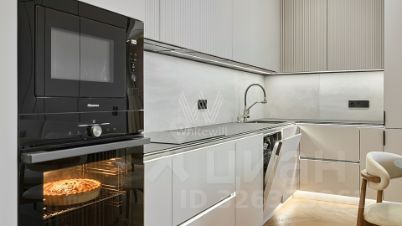 Произведены работы по шумоизоляции. Установлены скрытые напольные и потолочные плинтуса, теплый пол, фильтры для очистки воды, система вентиляции и кондиционирования Hisence. Кухонный гарнитур выполнен на заказ. Встроенный холодильник, духовой шкаф, микроволновая печь, варочная панель, посудомоечная машина — Hisence.