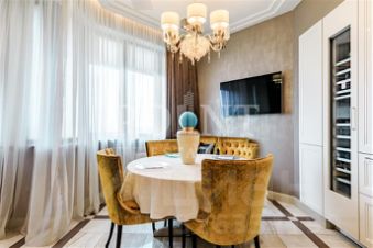 В отделке квартиры использованы премиальные материалы европейских брендов. Квартира укомплектована мебелью и декорирована, установлена бытовая техника Gaggenau. Состояние нового ремонта, в квартире почти не жили, использовалась как "пиджачная".