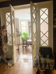 Большая гостиная с эркером (27,8 м²) с оригинальными дверьми с остеклением.
