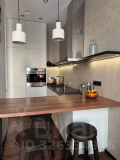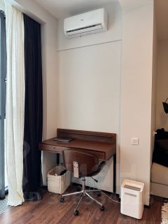 Много встроенных систем хранения — пространство легко держать в порядке, предусмотрены места для сезонных вещей и чемоданов. Санузел с душевой, стиральная машина скрыта во встроенном шкафу. Кухня укомплектована встроенной техникой: посудомоечной машиной, духовым шкафом, варочной панелью и холодильником. Установлен кондиционер.