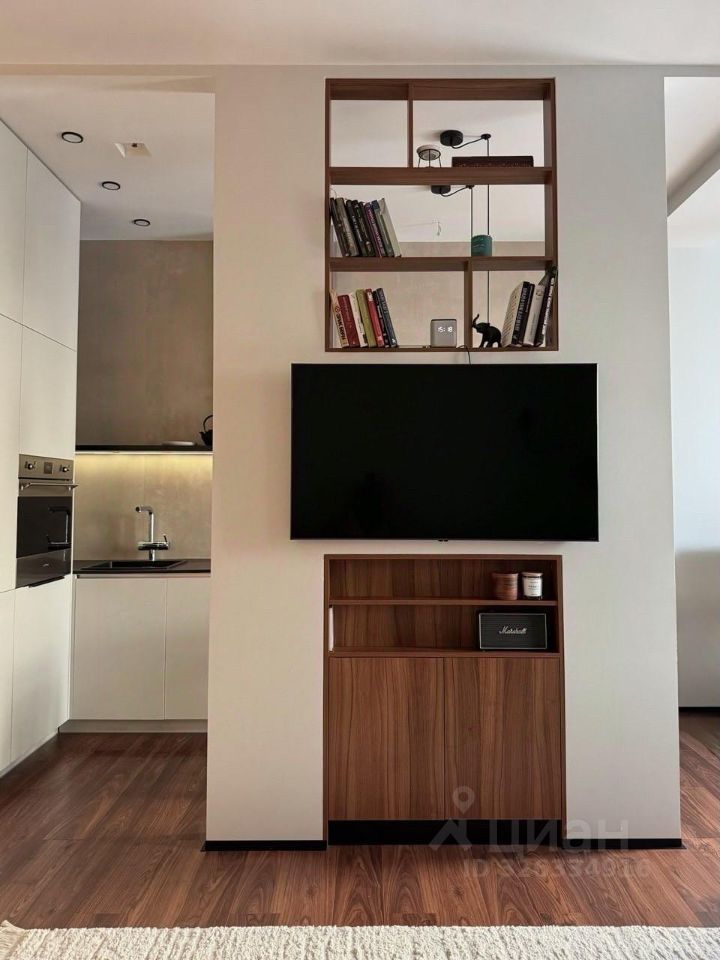 Планировка продумана под повседневную жизнь и рациональное использование пространства: кухня, зона отдыха и рабочее место удобно разделены. Установлен качественный раскладной диван, из которого получается полноценное спальное место с матрасом, подходящее для ежедневного сна.