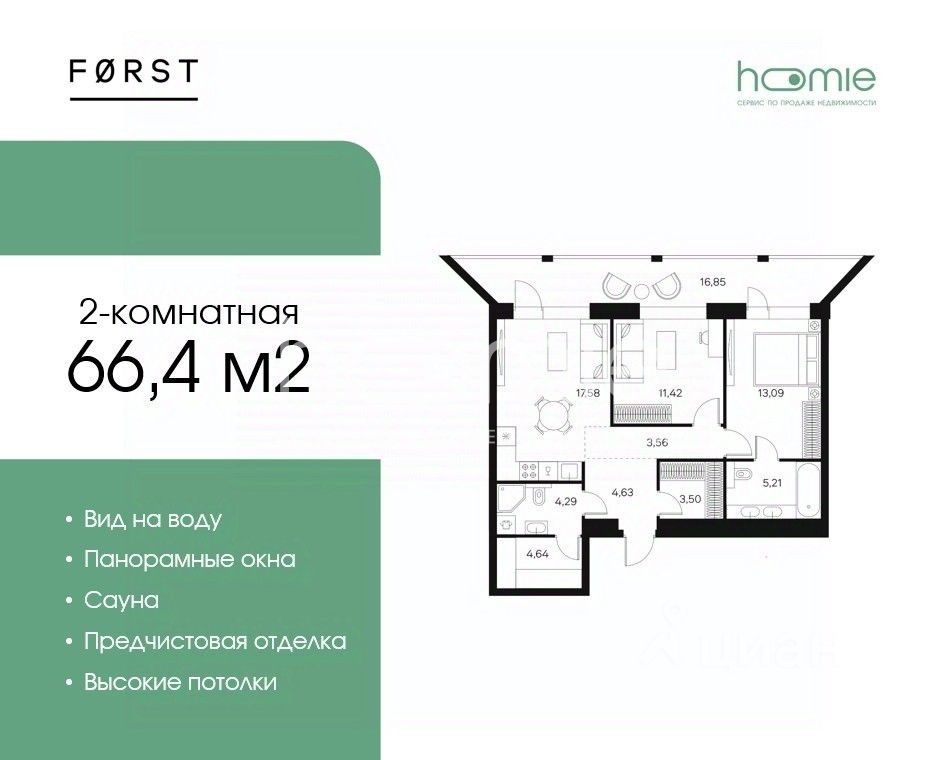 Продается 2-комнатная квартира с панорамным видом на воду, отделкой White Box MAX (улучшенная предчистовая отделка) в комплексе бизнес-класса "FORST".