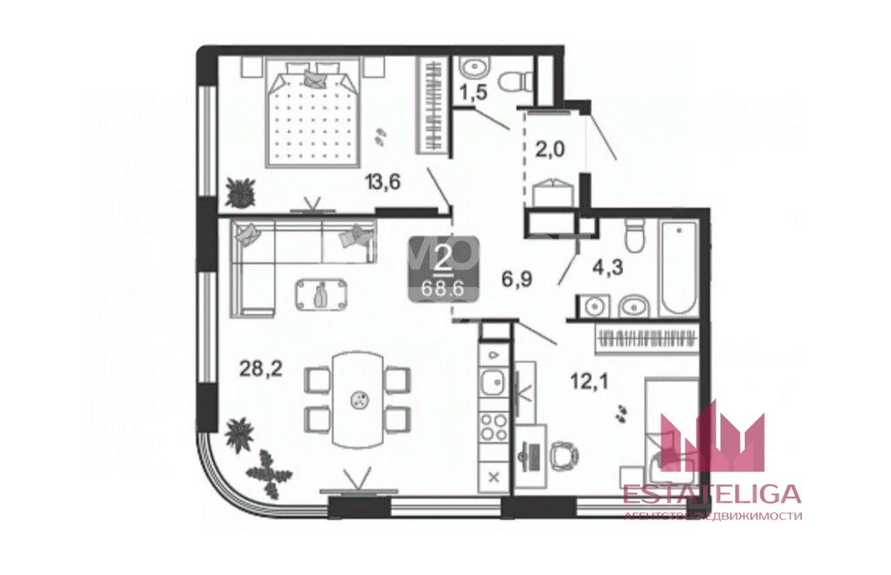 • В квартире два санузла: один совмещенный и один раздельный - гостевой.