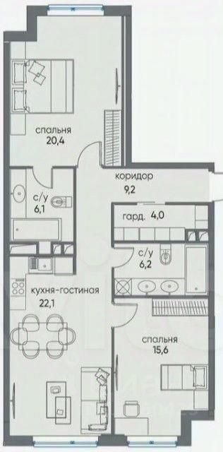 Цена указана за квартиру с готовым ремонтом по авторскому дизайн-проекту и мебелью.