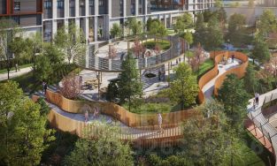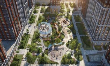 -вид на реку Москву и благоустроенный двор ЖК "Остров";