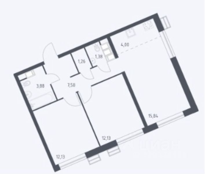 - Евротрешка. Две комнаты и кухня-гостиная.
