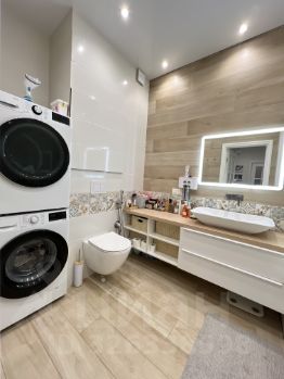 В квартире выполнен дизайнерский ремонт, который сочетает в себе стиль и функциональность. Планировка продумана до мелочей: два совмещенных санузла обеспечивают дополнительное удобство, а окна, выходящие во двор, гарантируют тишину и уединение. Лоджия добавляет еще больше комфорта и возможностей для отдыха.