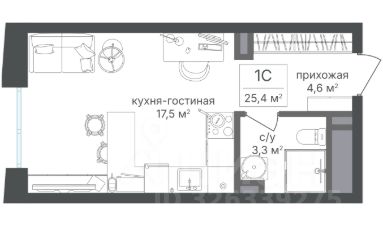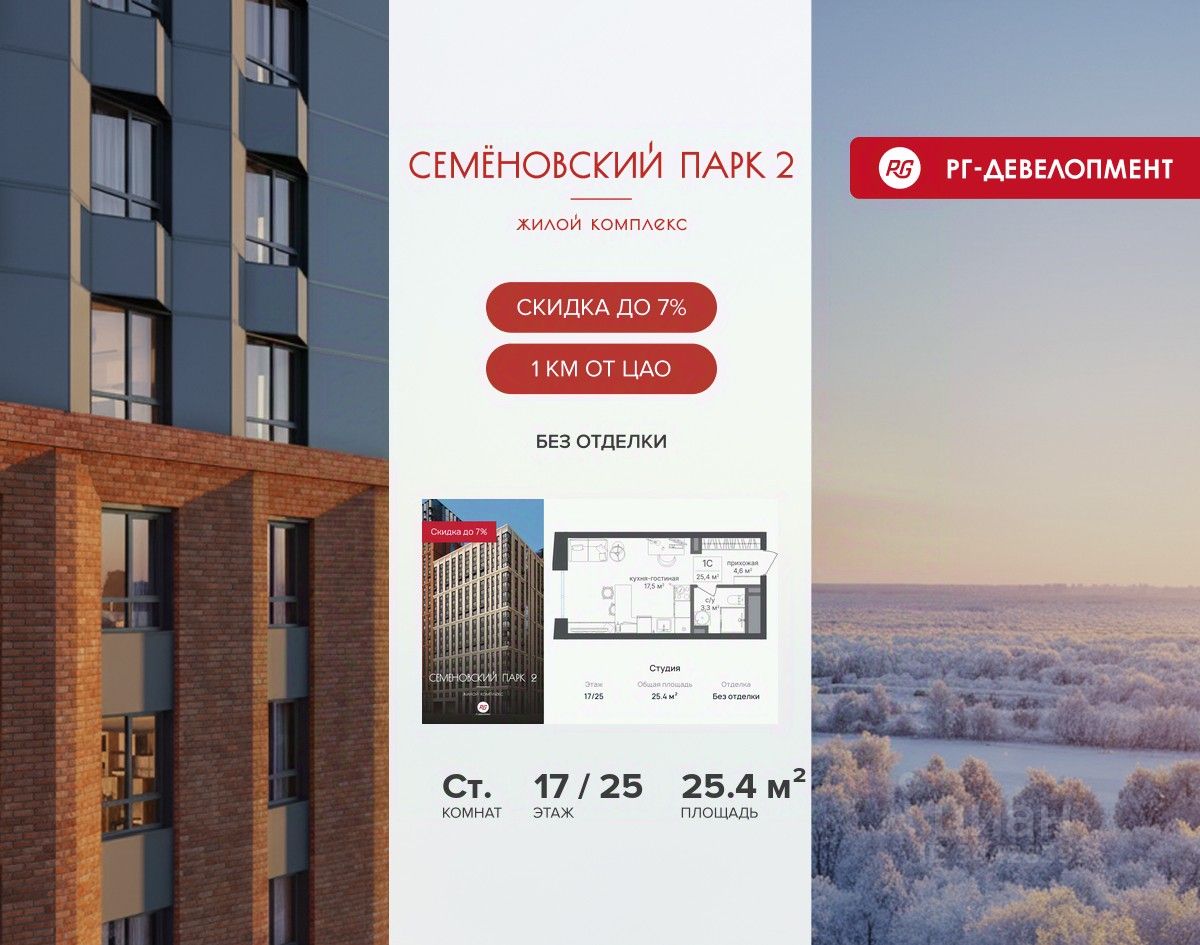 Продается студия 25,4 кв.м. в ЖК "Семеновский парк 2" на 17-м этаже 25 этажного дома.