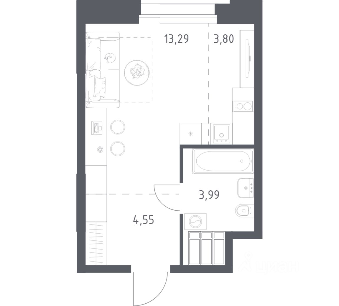 Строим кварталы для жизни с заботой о будущем. Предлагаются студия-апартаменты бизнес-класса площадью 25,93 кв.м в корпусе 2.3 на 21-м этаже, в жилом комплексе "Тропарево Парк".