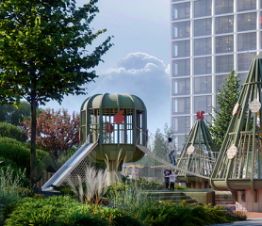 • Двухуровневый двор-парк 2 га с хвойным лесом и террасами
