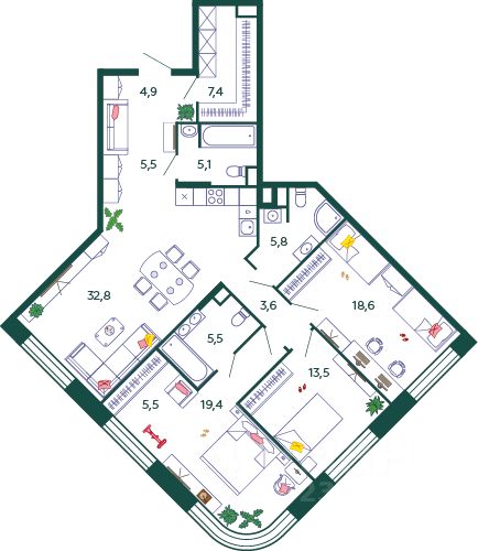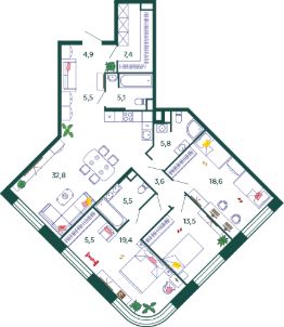 Продаётся 3-комнатная квартира в строящемся доме (Корпус 4.1 (2 очередь 1 этап)), срок сдачи: I-кв. 2026, общей площадью 127.6 кв.м., на 9 этаже. Это город в городе, который не подстраивается под старые рамки, а задает новую планку и стандарт жилого района в России.