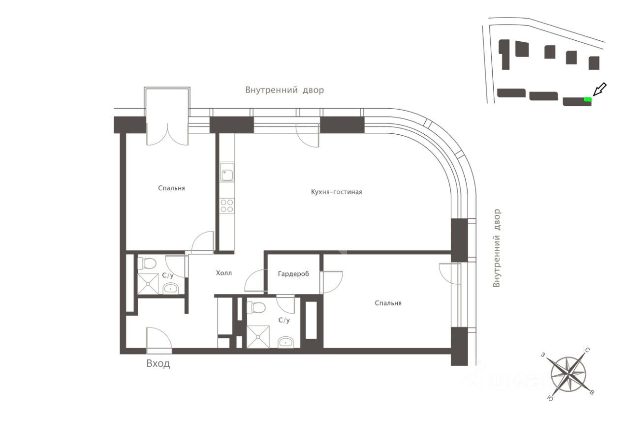 мастер-спальню со собственной ванной комнатой и гардеробным помещением