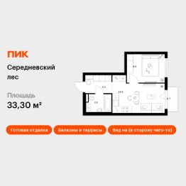 Продаётся 1-комн. квартира площадью 33,3 кв.м на 4 этаже 16 этажного дома (Корпус 2.1.3, Секция 3) проекта ПИК Середневский лес. Светлый просторный подъезд на уровне земли, функциональная планировка, большие окна, c отделкой.