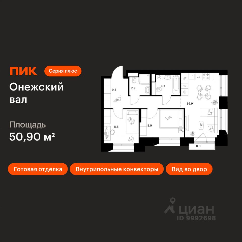 Новостройка! Продается 2-комн. кв-ра площадью 50,9 кв.м, (Корпус 1.1.3, Секция 3) 5 этаж 18-этажного дома в Онежский вал от ПИК. Квартал "Серии плюс" строится на севере Москвы, в 10 минутах пешком от станции метро "Селигерская" и МЦД "Моссельмаш". Проект понравится всем, кто привык к комфортной жизни и ценит возможность оставаться в ритме большого города и быстро добираться до центра столицы.