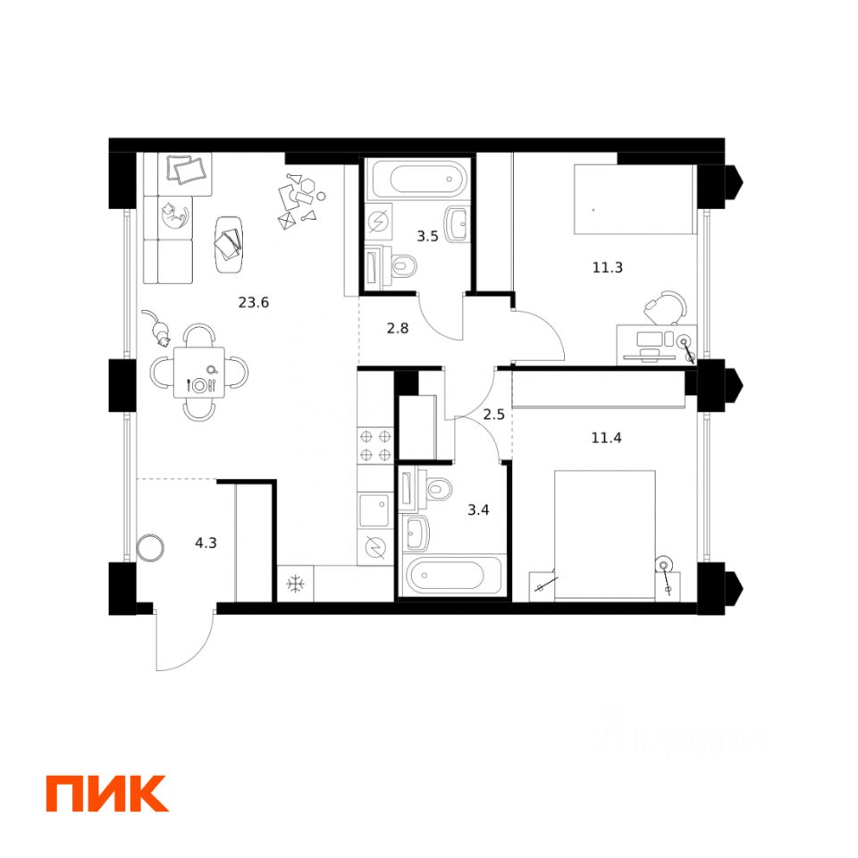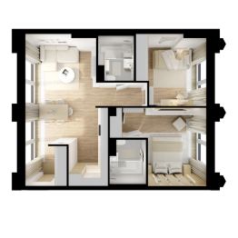 В "Бусиновском парке" предусмотрены квартиры с панорамным остеклением, различными балконами, эркерами, угловыми окнами и большим количеством окон — до пяти в одной комнате. В таких квартирах широкий угол обзора: можно пить кофе, наблюдая за жизнью на улице и наслаждаясь ощущением простора. Ещё больше комфорта придаст мягкий солнечный свет, который равномерно осветит всю квартиру. Артикул 953805 (Заст