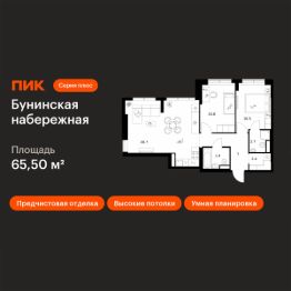 Продаётся 2-комн. квартира площадью 65,5 кв.м на 1 этаже 16 этажного дома (Корпус 2.6/1.2, Секция 2) проекта ПИК Бунинская набережная. Светлый просторный подъезд на уровне земли, функциональная планировка, большие окна, предчистовая отделка.
