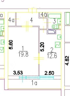 Площадь квартиры составляет 43,1 кв. м, и она впечатляет своими гармоничными пропорциями. Здесь вас встретит большая, светлая кухня площадью почти 13 кв. м и уютная комната в 20 кв. м, в которой уже установлены новые раздвижные двери, скрывающиеся в стене. Очень практичным дополнением станет удобная кладовая для хранения. Санузел совмещенный, компактный, но вполне комфортный.