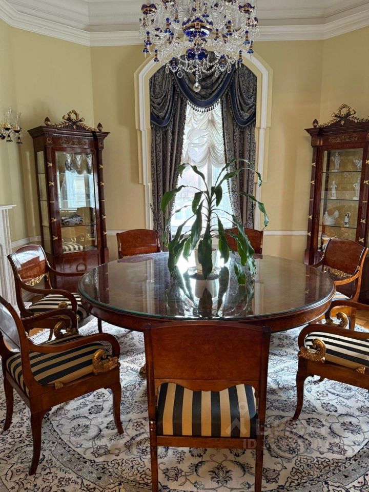 Внутреннее пространство квартиры продумано до мелочей. Функциональная планировка квартиры: холл с гардеробной и гостевым санузлом, гостиная, столовая, кабинет, кухня, основная спальня со своей гардеробной комнатой и санузлом (в саунзле оборудована купель), спальня со своим санузлом и гардеробной.