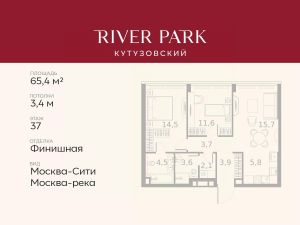 Продается 2-к квартира площадью 65.4 кв.м. на 37-м этаже в жилом комплексе премиум-класса River Park Кутузовский в Башне Topaz Tower