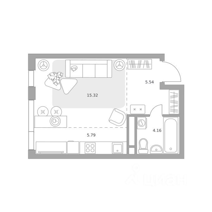 15,3 м²
