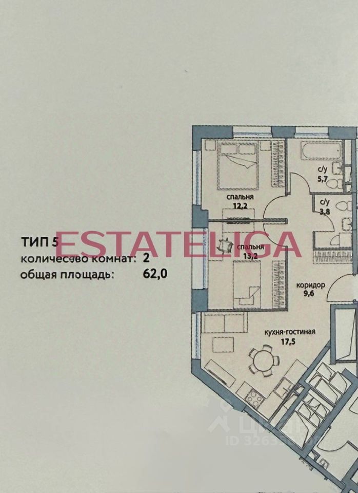 Id 60307. ПРОДАЕТСЯ УЮТНАЯ ДВУХКОМНАТНАЯ КВАРТИРА!
