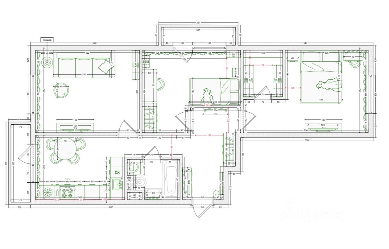 Жилая площадь55 м²