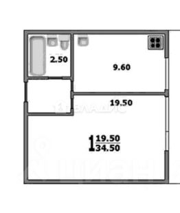Детали квартиры: Жилая площадь: 19,5 кв. м. Площадь кухни: 9,6 кв. м.