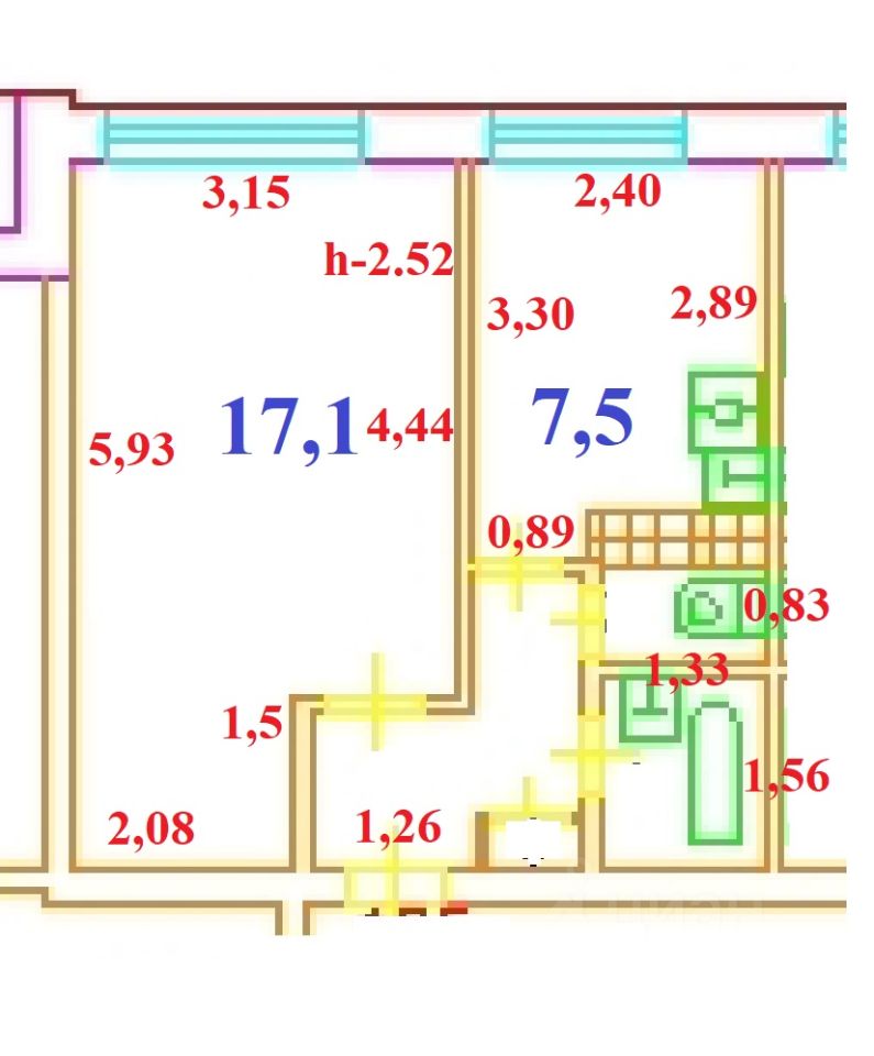 17,1 м²