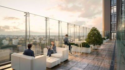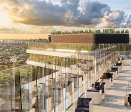 В каждой секции дома - дизайнерское лобби с потолками до 5 м, стильным интерьером, зонах ожидания и лаунжами с мебелью на заказ. Инфраструктура дома включает в себя детские клубы в каждой секции, sky-мосты между секциями на уровне 25 и 27 этажей и уникальный sky-парк на крышах - с обзорной площадкой, беговой дорожкой, воркаутом и местами для отдыха и работы. На мостах устроены зеленые лаунжи и коворкинги. Из дома открываются потрясающие виды на парк "Событие", МГУ, Сити, Поклонную гору и запад Москвы.
