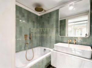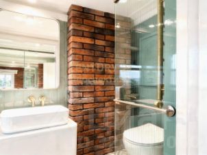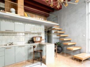 Каждый элемент здесь работает на стиль: натуральные материалы, открытые балки, изящная парящая лестница. Авторский дизайнерский ремонт бережно сохранил исторические кирпичные стены и мозаику в местах общего пользования, добавляя пространству неповторимый характер.