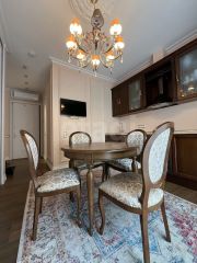 Квартира отремонтирована в классическом стиле с использованием качественных материалов. Современные внутрипольные конвекторы отопления. Окна украшают портьеры сшитые на заказ. Гипсовая лепнина по всем апартаментам- проявление высокого вкуса.