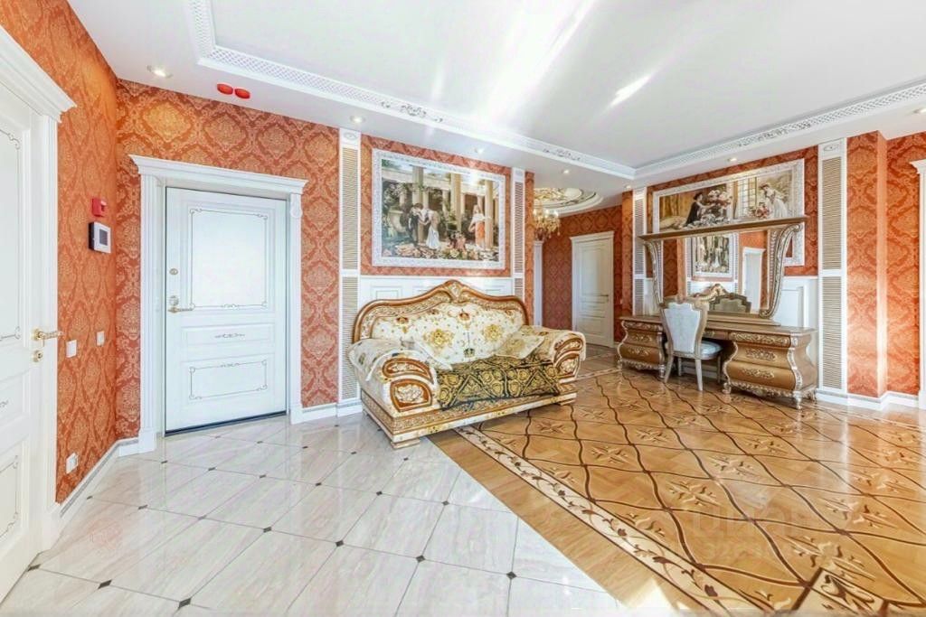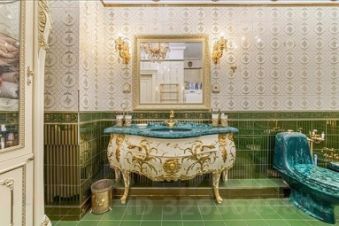 В квартире выполнен дизайнерский ремонт в стиле барокко с использованием премиальных материалов, на полу выложен паркет из дуба с инкрустацией красного дерева, потолки украшены лепниной из гипса.