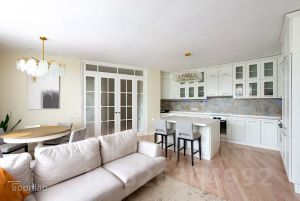 Квартира полностью оснащена мебелью европейских производителей и встроенной немецкой бытовой техникой Bosch, 2 швейцарских холодильника LIEBHERR. Установлены фильтры для очистки воды, раковина с измельчителем пищи. В каждой комнате -японские кондиционеры Daikin. В кухне-гостиной уложен пробковый пол, в мокрых зонах полы с подогревом. Освещение - разноуровневое, с возможностью создавать разные сценарии.