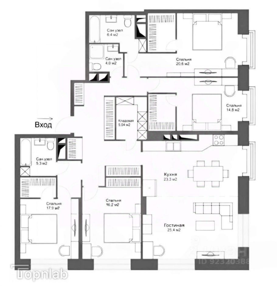 Жилая площадь125 м²