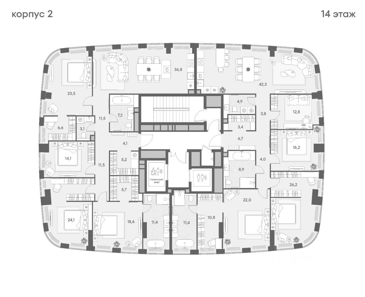 • В лобби: приватный фитнес-клуб, бьютирум, переговорная, детская игровая комната.