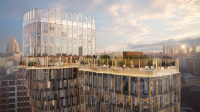 На высоте 57 метров раскинулся парящий двор-сад — частный оазис в центре мегаполиса. Это пространство, где архитектура встречается с природой: много зелени, чистый и прозрачный воздух, насыщенный кислородом, обилие солнечного света и ничем не загороженные виды.