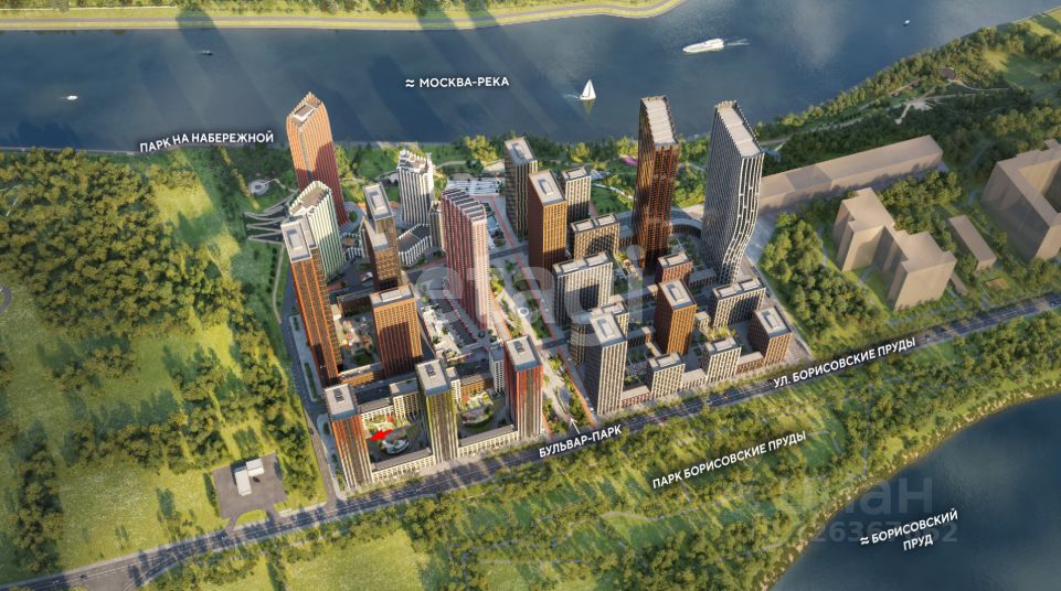 Собственный парк на набережной Москвы-реки, прогулочная зона с дизайнерским озеленением, оборудованы пространства с турниками, а также велосипедные и беговые дорожки, смотровая площадка, зона для занятий йогой и уютные зоны отдыха с беседками. В темное время суток набережная преображается за счет продуманной системы освещения.