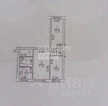 Комнаты: 17 м2; 10.2 и 11.5 м2