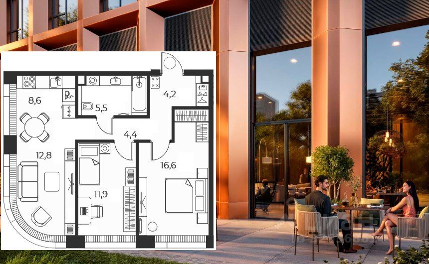 Вашему вниманию предлагается отличная двухкомнатная квартира общей площадью 64кв.м. в ЖК VEER. Сдаётся без отделки. Просторная кухня-гостиная 21.4кв.м, моллированное панорамное окно! Располагается на 12 этаже 35 ти этажного корпуса.