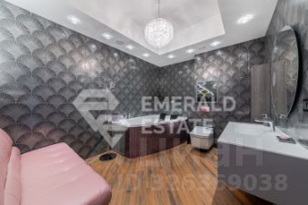 Мебель в спальне Италия Bently, гардеробная Германия Hulsta. Телефизоры Lowe, акустическая система Niagara. Oбои Loro Piano и Roberto Cavalli. Сантехника Villeroy Boch, унитаз Япония Toto.