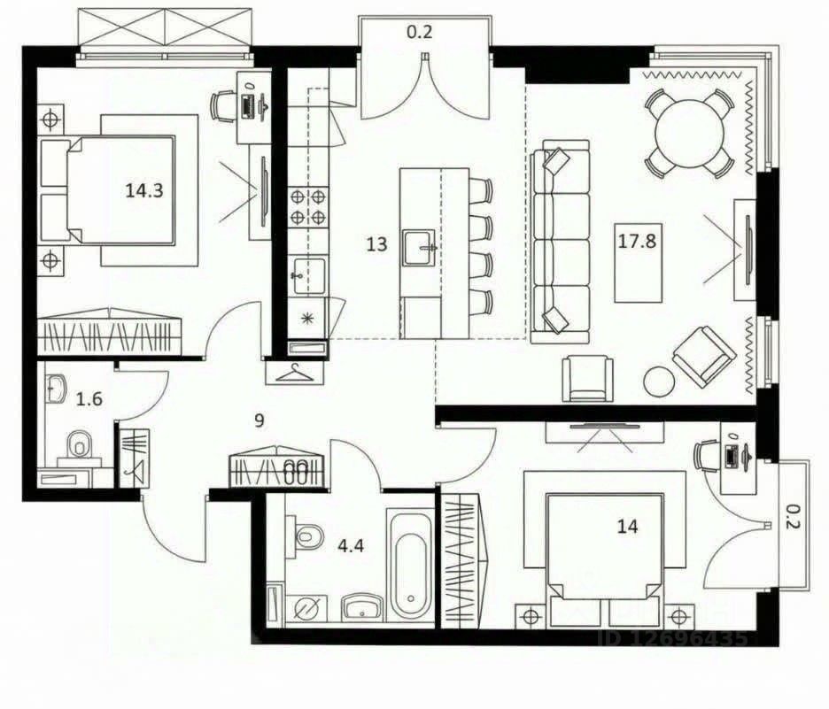 Огромная кухня-гостиная (30 м²), две уютные спальни для спокойного отдыха. квартира с новым ремонтом, из качественных современных материалов в стиле Неоклассика.