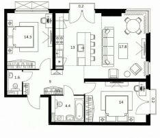 Общая площадь квартиры 75кв.м. на комфортном 3 этаже.