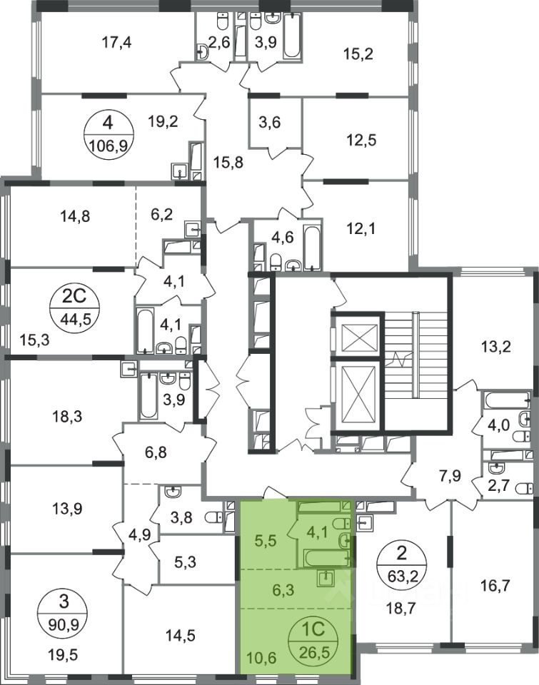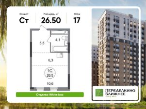 Общая площадь квартиры - 26,5 кв. м, этаж 17 из 17.