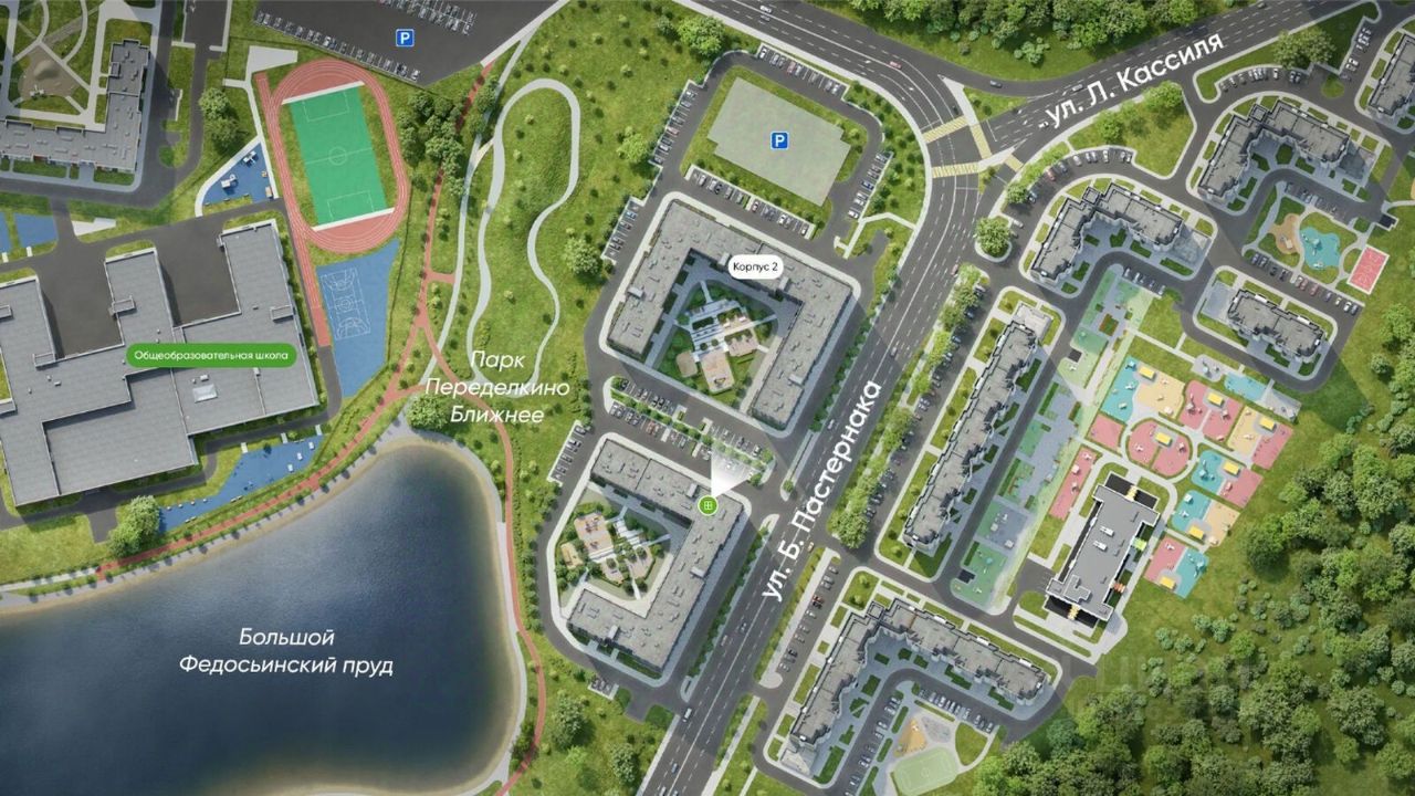 13 фаза имеет уникальное расположение и находится непосредственно на берегу Федосьинского пруда, который является сердцем города-парка "Переделкино Ближнее".
